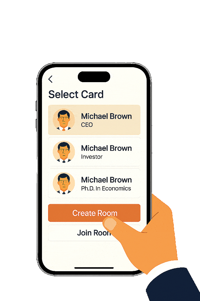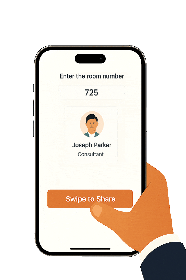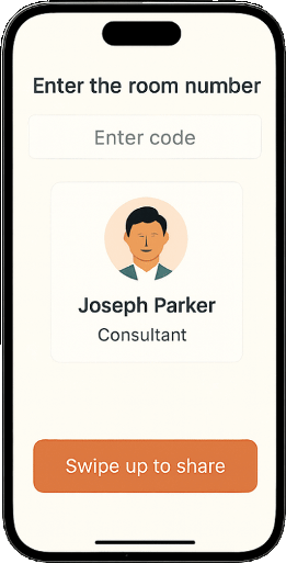 Even in a hyperconnected world, sharing contact details remains clumsy. Paper cards are outdated, QR codes awkward, and Bluetooth or NFC often fail. Verbal sharing is slow and error-prone.